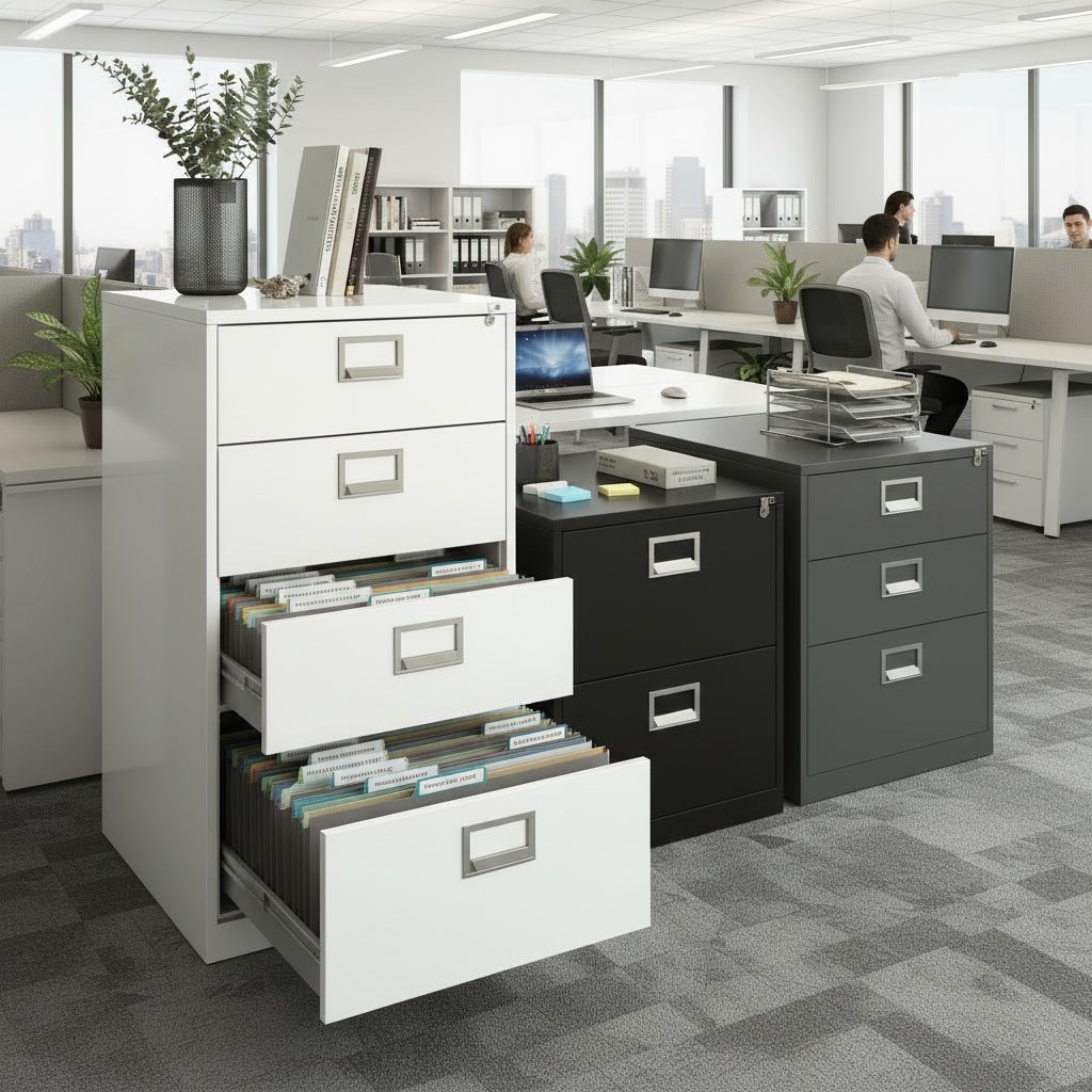 For home offices and small businesses, lateral file cabinets and adjustable organizers are practical solutions that offer storage without taking up too much space.